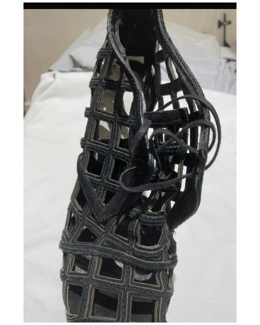 These shoe are from a catwalk show around 8 years ago and are unique and can’t be bought any more .These Burberry shoes are a stylish and elegant choice for a party or cocktail occasion. With a netting style black leather design and a stiletto heel, they exude sophistication and glamour. Made in Italy, they boast a standard shoe width and leather lining and insole for comfort. The gladiator style adds a modern twist to a unique heel design, making them a versatile and chic addition to any woman's wardrobe. Perfect for the summer season, these Burberry shoes are a must-have for the fashion-forward woman looking to make a statement.