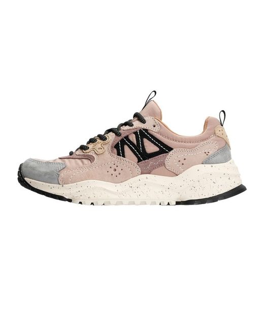 Flower Mountain. Season: Autumn/Winter. Colour: Pink. Style: Sneaker. Shoe Shaft Style: Low Top. Season: Autumn. Exact Colour: Grey/Soft Pink. Heel to Toe Drop.