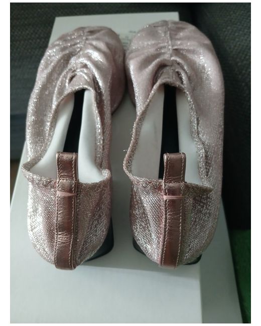 The COS Pink Metallic Shoes in size 4 are a stylish and versatile choice for women. Made by the brand COS, these flats feature a vibrant pink colour and a sleek metallic finish, adding a touch of personality to any outfit. With a comfortable flat design, these shoes are perfect for everyday wear or special occasions, making them a must-have addition to any woman's wardrobe. there's a scratch on the back of one shoe.