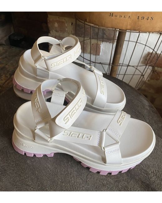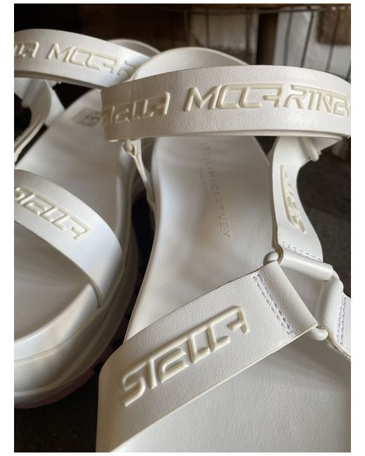 RRP £520 Stella McCartney Trace logo-embossed flatform sandals Size: large UK3 it may also fit UK4 Length inside 24 cm White / Lilac The sandals are new with minor imperfections. Please check all photos. Stella McCartney found the perfect balance for the fashion world. Making ecologic choices without diminishing design, these Trace flatform sandals are crafted from artificial leather, which is embossed with the brand’s logo. Made in Italy Composition Lining: Polyurethane 100% Outer: Polyurethane 100% Sole: Rubber 100% SIZE & FIT Measurement HEEL 2.8 in(7 cm) PLATFORM 1.8 in(4.5 cm)