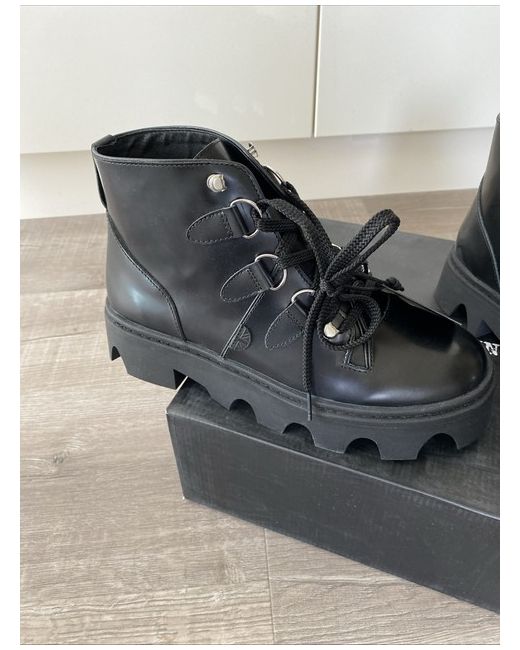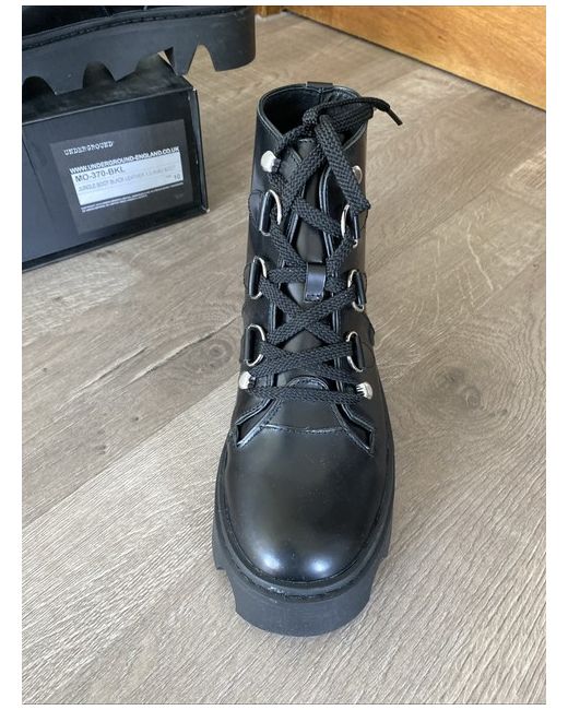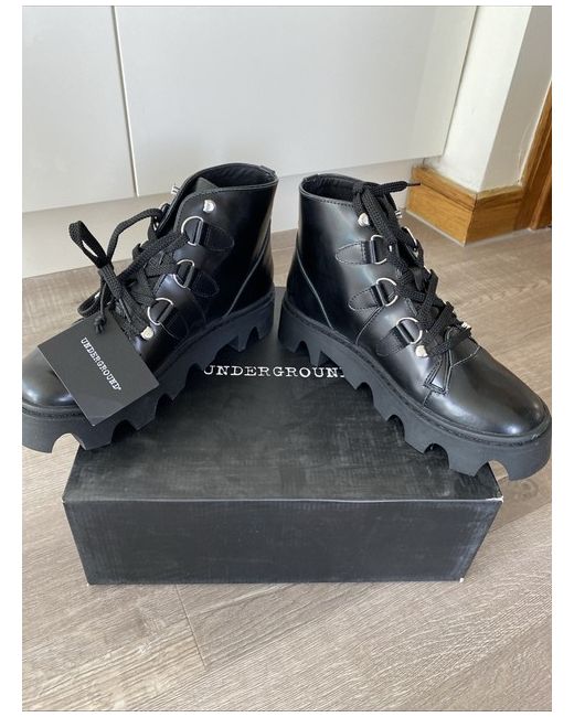 The Underground Jungle Boot in Black Leather, featuring a round toe and lace-up closure, is a stylish and rugged addition to anyone's wardrobe. This unisex boot, with a low heel height, is perfect for those who appreciate a combat-style design. The leather lining and upper material provide durability and comfort, while the leather outsole ensures a sturdy grip. New with a damaged box, this boot is a fashionable choice for those looking for a versatile and on-trend footwear option.