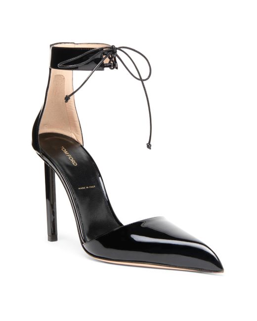 Made in Italy, these stiletto-heel pumps from TOM FORD are crafted of patent leather. Point toe Ankle tie closure Patent leather upper Leather lining Leather trim Leather sole Made in Italy SIZE Stiletto heel: about 4.25" (105mm) ABOUT THE BRAND After 10 years of serving as the Creative Director for several international luxury fashion houses, Tom Ford launched his own line of optical frames, sunglasses and beauty in 2005. The following year he debuted menswear, and in 2010, women's ready-to-wear. His sleek, tailored aesthetic has since catapulted him to mega-brand status. Women's Shoes - European Designer Shoes > Tom Ford > Saks Fifth Avenue. TOM FORD. Color: Black. Size: 9.