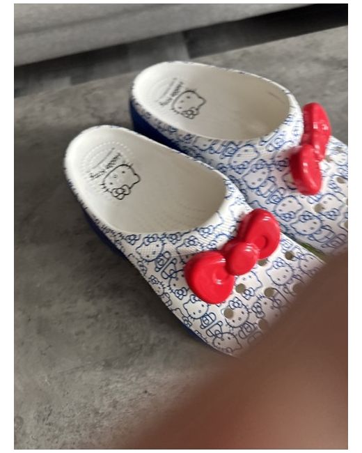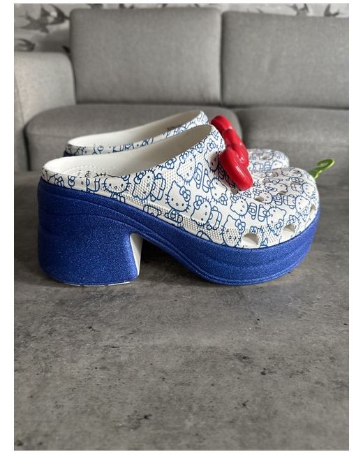 Hello kitty crocs size 8UK ladies Blue glitter high heel red bow attachment hello kitty blue print in the white croc base USA size 10 New unused but some small dust marks on the sole