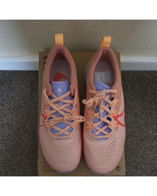 Bra d New but as from an outlet back wall only half box. Very nice trainers and light. Please check out my other items The Nike Women's React Pegasus Trail 4 in UK size 7.5 and EU size 42 is a stylish trainer designed for women. This sneaker features a vibrant Arctic Orange colour with Magic Ember accents, perfect for adding a pop of colour to your outfit. Part of Nike's popular React product line, these trainers offer both style and performance, making them ideal for everyday wear or workouts.