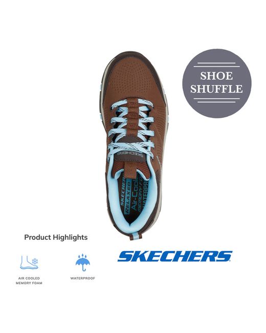 Triumph over the trails in outdoor style and roomy comfort wearing Skechers Relaxed Fit®: Trego - Trail Destiny. Skechers® logo detail. Relaxed Fit® for a roomy comfort fit at toe and forefoot. Upper: SYNTHETIC, TEXTILE.