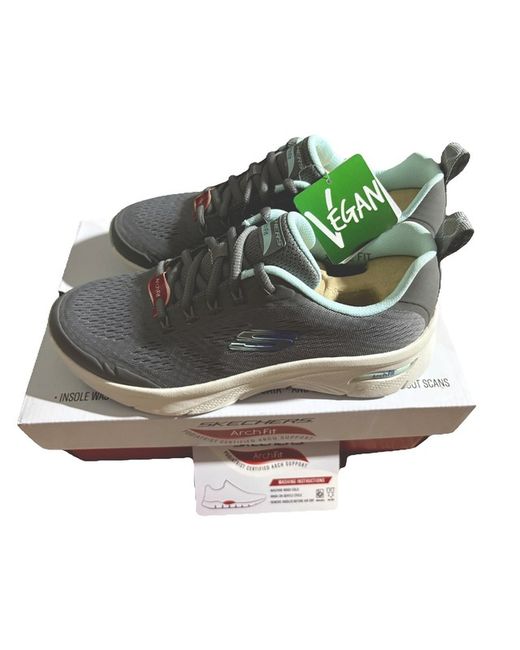The Skechers Arch Fit D'Lux Women's Grey/Blue Relaxed Fit Trainers in size 5 are a stylish and comfortable choice for women looking for a new pair of sneakers. Made by the trusted brand Skechers, these trainers offer a relaxed fit and feature a sleek grey colour that can easily be paired with a variety of outfits. With a focus on arch support and overall comfort, these trainers are perfect for everyday wear or light exercise. Step up your shoe game with these versatile and fashionable trainers.