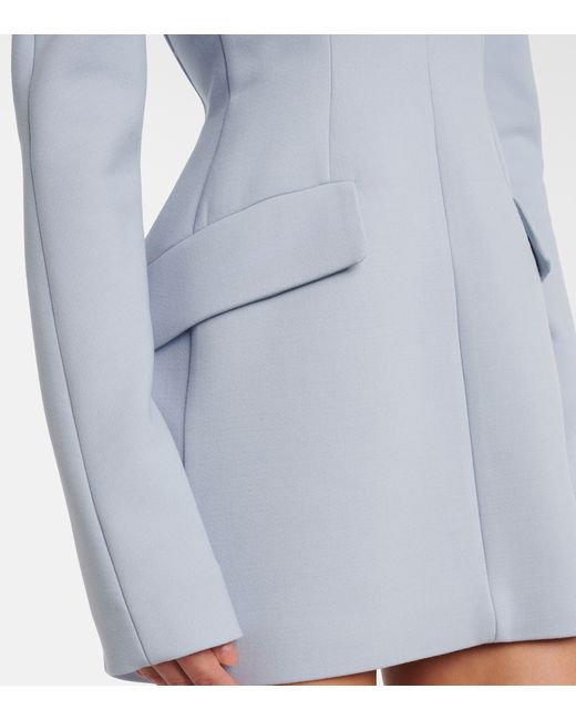 Material: 53% polyester, 43% wool, 4% elastane. Care instructions: dry clean. Made in Italy. Designer color name: Blue. Item color: blue. Lining: 100% polyester. Collar: mockneck. Closure: concealed zipped back. Pockets: flap pockets.