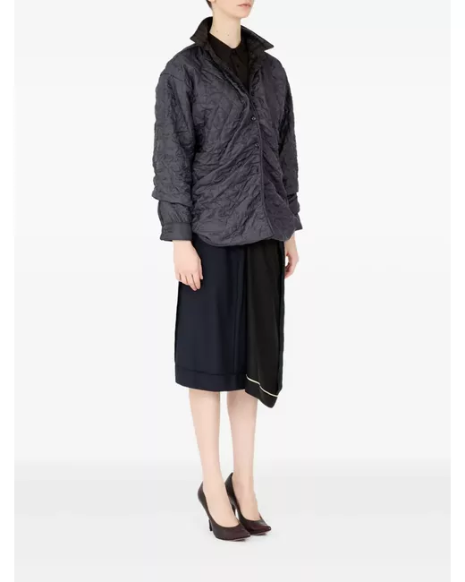 dark grey quilted texture check-pattern collar long sleeves button fastening