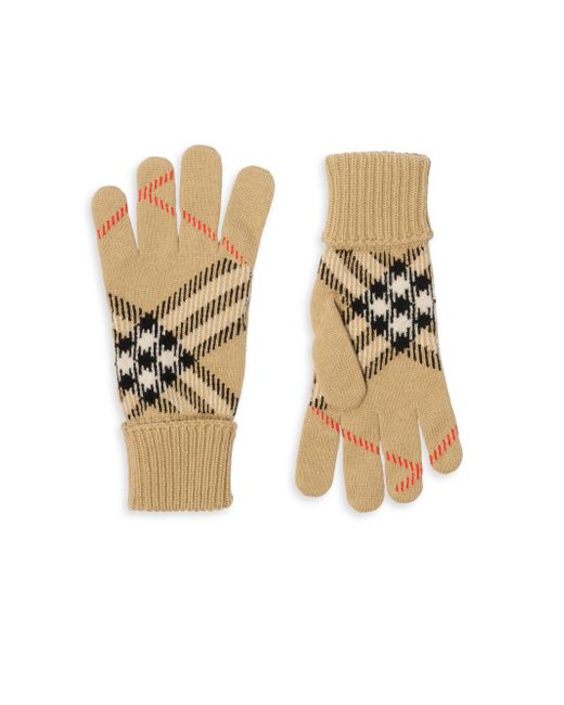 Crafted of checked cashmere blend, these gloves from Burberry are styled with ribbed, folded cuffs. Ribbed cuffs 96% cashmere/3% polyester/1% polyamide Dry clean Made in UK ABOUT THE BRAND Founded in 1856 by 21-year-old Thomas Burberry, the brand set out with a mission to stylishly protect against British weather-and Burberry's iconic trench coat was born. In the 1920s, its renowned check pattern was introduced as the coat's lining. Today, under Creative Director Daniel Lee, the heritage brand continues to evolve and create timelessly classic men's, women's and kids' pieces, along with beauty. Men Accessories - Designer Accessories > Burberry > Saks Fifth Avenue. Burberry. Color: Sand. Size: Medium.