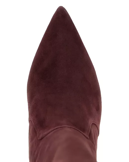 burgundy suede side zip closure pointed toe sculptural heel leather sole