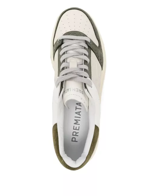 beige leather construction perforated detailing suede panels lace-up fastening flat rubber sole