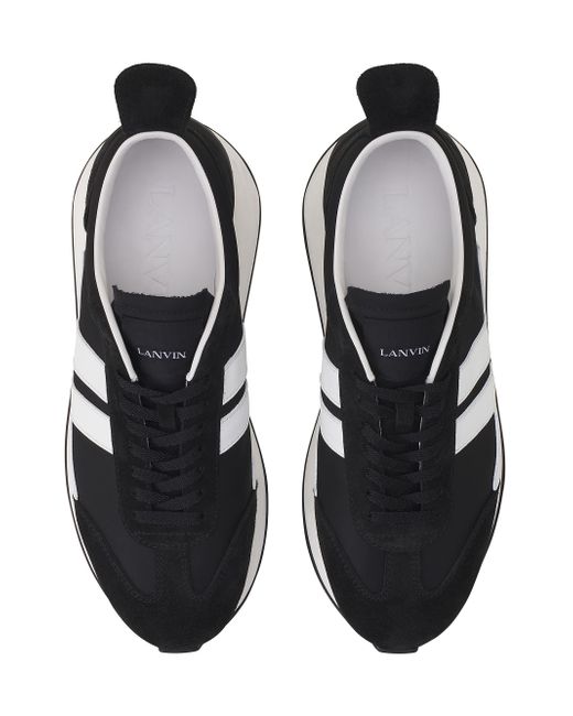 Lanvin's Bumpr sneaker is back with a vengeance for the Winter 2025 collection. A true House icon, this hybrid sneaker fuses classic and modern elements, with long-haired suede and technical materials. It embodies the alliance between comfort and style and adds a touch of casual elegance to any outfit. Bumpr thick-soled sneakers in leather and nylon JL logo and Lanvin logo on the sides Tab featuring the Lanvin label Lanvin logo engraved on the spoiler Exclusive ecru rubber sole Outer main material: 54% Polyamide Woven, 46% Calf - Bos Taurus Lining: 52% Calf - Bos Taurus, 48% Polyester Woven Made in Portugal ABOUT THE BRAND Operating since 1889, Lanvin epitomizes the savoir-faire and craftsmanship of a true French heritage fashion house. The label delivers womenswear and menswear that focuses on chic and enduring design with a playful twist. Under the creative direction of Peter Copping, the brand continues to innovate its offerings in ready-to-wear, leather goods, and accessories-including its signature ballet flats and sneakers. Lsd Mens - Mens Rtw Lsd Mp > Lanvin > Saks Fifth Avenue. Lanvin. Color: Black White. Size: 3.