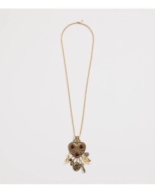 The word trinkets brings to mind images of antique jewellery discovered in quaint vintage shops - a nostalgia that Chloé has harnessed in its latest accessories collection. This necklace features a delicate gold-tone chain with a small heart pendant suspended from it, reminiscent of a cherished find from a bygone era.