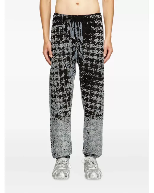 blue grey devoré houndstooth pattern elasticated waistband side slit pockets drawstring fastening