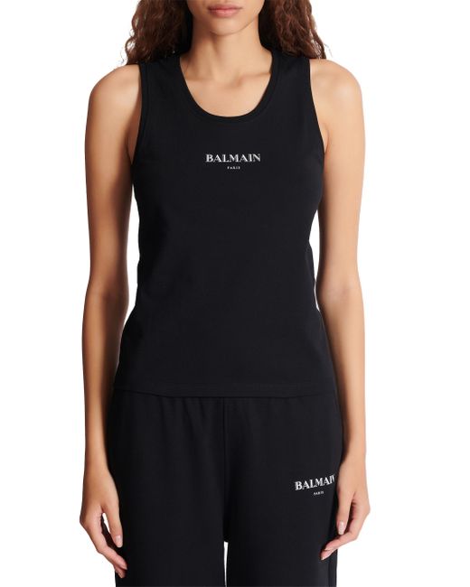 ONLY AT SAKS. Balmain's Capsule delivers elevated essentials crafted from premium cotton, combining everyday comfort with bold, signature branding. Relaxed silhouettes and vintage-inspired details bring a refined edge to classic streetwear staples. Balmain's classic tank top highlights the relaxed silhouette with a light cotton construction and logo graphic at the chest. This piece features a scoopneck and sleeveless cut. Scoopneck Sleeveless Pulls over 100% cotton Dry clean Imported SIZE & FIT Model measurements: 5'10" tall Model is wearing a US size Small Please note: This item runs small. ABOUT THE BRAND In 1945, founder Pierre Balmain made his well-received debut of opulent, ultra-feminine designs. Known today for its iconic blazers, impeccably constructed dresses and signature fragrances, the brand continues its dedication to masterful tailoring and elegance under the helm of Creative Director Olivier Rousteing. Advanced Designer - Balmain > Balmain > Saks Fifth Avenue. Balmain. Color: Black White. Size: Medium.