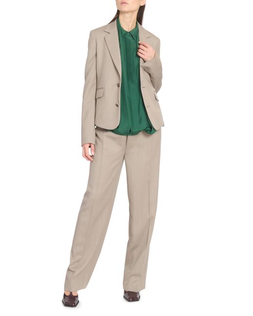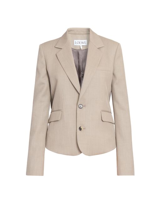 Crafted in Italy, LOEWE's tailored stretch blazer features notch lapels, front flap pockets, and a stretchy back waist. Notch lapels Long sleeves Chest welt pocket Side flap pockets Elasticized back Button-front closure 50.5% viscose/48% wool/2.90% leather/0.50% zamak/0.10% brass Dry clean Made in Italy SIZE & FIT Model measurements: 5'10" tall Model is wearing a US size 4 ABOUT THE BRAND For over 179 years, LOEWE has been synonymous with classic luxury and expertise in fine leather and tailoring. The Spanish house's latest chapter hones in on redefining the craft through an intellectual-yet-playful approach to fashion. The line's bold and vibrant take on the Spanish lifestyle is infused in its effortlessly chic handbags, shoes, ready-to-wear and accessories for women and men. Advanced Designer - Loewe > Loewe > Saks Fifth Avenue. LOEWE. Color: Beige Melange. Size: 2.
