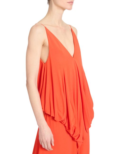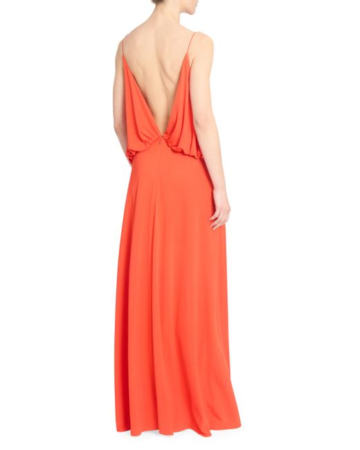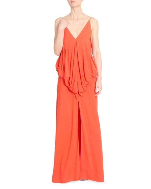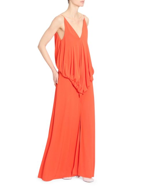 LOEWE's gown highlights the casading design with a deep V-neckline and an alluring front slit. V-neck Sleeveless Side slit Pulls over 80% viscose/20% silk Dry clean Made in Italy SIZE & FIT Model measurements: 5'10" tall Model is wearing a US size 4 ABOUT THE BRAND For over 179 years, LOEWE has been synonymous with classic luxury and expertise in fine leather and tailoring. The Spanish house's latest chapter hones in on redefining the craft through an intellectual-yet-playful approach to fashion. The line's bold and vibrant take on the Spanish lifestyle is infused in its effortlessly chic handbags, shoes, ready-to-wear and accessories for women and men. Advanced Designer - Loewe > Loewe > Saks Fifth Avenue. LOEWE. Color: Orange. Size: 2.