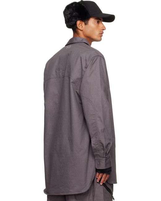 Cotton- and hemp-blend twill shirt. · Press-stud fastening at spread collar · Press-stud closure · Zip pocket at chest · Embroidered eyelets at front and back · Shirttail hem · Buttoned barrel cuffs · Logo bonded at back collar Supplier color: Granit
