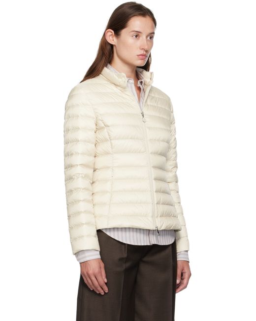 Down-filled and quilted recycled nylon taffeta jacket. · DIST-certified down · Press-stud fastening at stand collar · Two-way zip closure · Zip seam pockets at waist · Tricolor felted logo patch at sleeve · Patch pockets at interior · Fully lined · Logo-engraved silver-tone hardware Supplier color: Beige Fill 1: 90% goose down, 10% feather. Fill 2: 100% polyester.