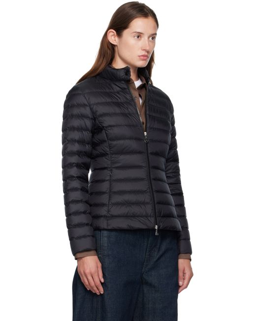 Down-filled and quilted recycled nylon taffeta jacket. · DIST-certified down · Press-stud fastening at stand collar · Two-way zip closure · Zip seam pockets at waist · Tricolor felted logo patch at sleeve · Patch pockets at interior · Fully lined · Logo-engraved silver-tone hardware Supplier color: Black Fill 1: 90% goose down, 10% feather. Fill 2: 100% polyester.