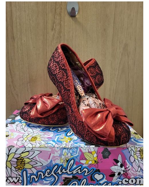 Women's Red Metallic Mal E Bow Heels UK 7 Brand New Box
