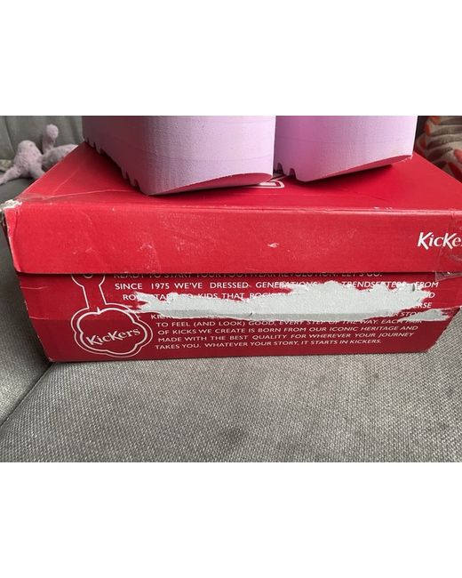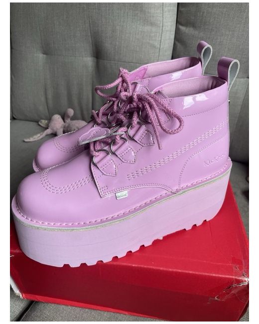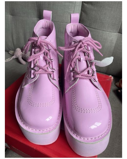 Absolutely stunning pink platform ankle boots Size 41 which is size 6 according to kickers website but these are large in sizing. I’d say would fit an 8 easy Little discolour to ankle, unsure why as new but came like this Sender sent them in their original box to , so box is damaged and has there original label on. Shows in pictures Any questions please ask.