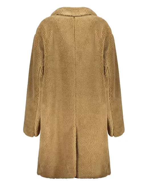 Notched-collar faux-shearling coat