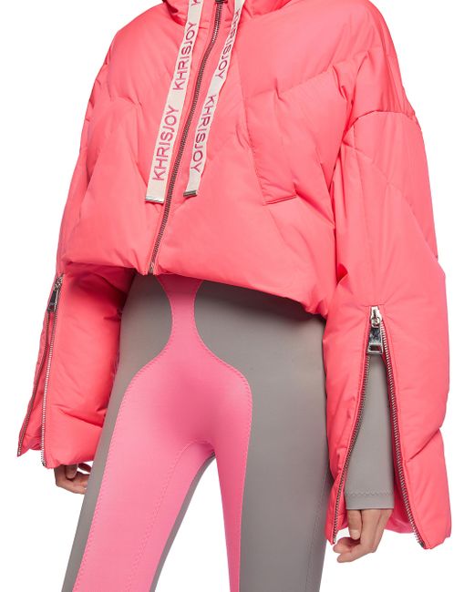KhrisJoy's cropped Iconic Milano puffer jacket elevates the quilted silhouette with a matte finish and warming down filling. This piece features a drawstring hood and extended zip cuffs. Drawstring hood Long sleeves, zip cuffs Front zip closure 86% polyester/14% polyurethane Lining: 100% polyester Fill: 90% down/10% feathers Hand wash Imported SIZE & FIT About 21" from shoulder to hem Model measurements: 5'10" tall Model is wearing a US size 4. Outerwear And Swimwear - Down > Khrisjoy > Saks Fifth Avenue. KhrisJoy. Color: Rhodolite Fuchsia. Size: 10.