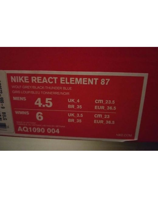 Nike React Element 87 Size UK 4.5 EUR 37.5 Colour Wolf Grey Black Thunder Blue Code AQ1090 004 Elite Running New With Box. box lid damage Free postage