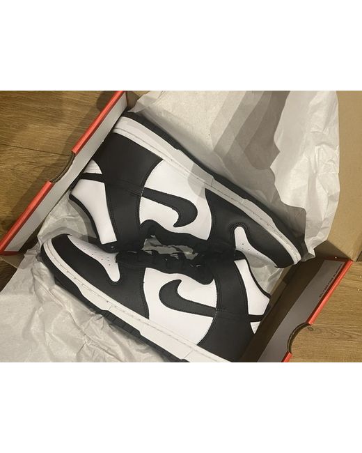 Introducing the Nike Panda Dunk High in black and white, size UK 8.5. This stylish sneaker from the Nike Dunk product line is perfect for men who love trainers. The high-top shoe shaft style provides excellent ankle support, making it ideal for everyday wear. The shoe features a sleek black and white design, with a playful panda theme that adds a unique touch. It's brand new and comes in its original box, making it an excellent gift for someone special. Whether you're an avid sneaker collector or just looking for a new pair of shoes, the Nike Panda Dunk High is an excellent choice.