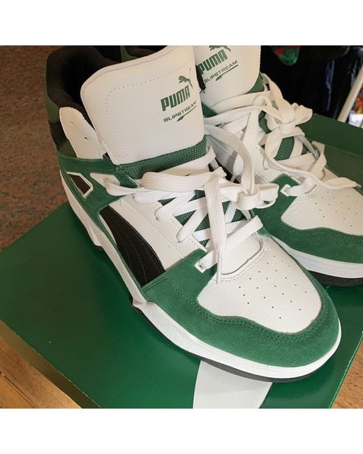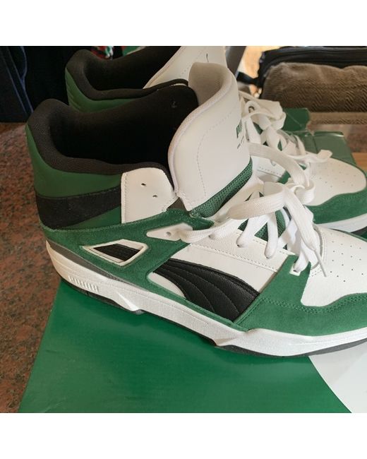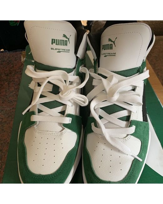Puma high top slipstream trainers in box never worn. White/ green size 11.