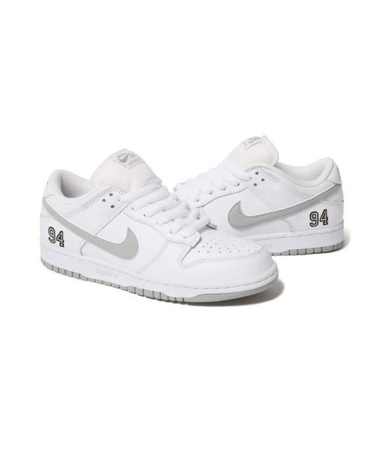 SB Dunk Low Supreme 94 White Metallic Uk 9