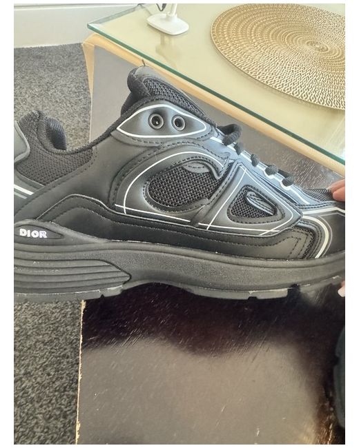 These Dior Men's Trainers in size 42 are a stylish and sleek option for casual wear. With a black colour and lace-up closure, these trainers feature rubber outsole material and a signature Dior design. Made in Italy, they are part of the Dior B product line and have a contemporary sneaker style with reflective accents, perfect for the spring season. The designer theme adds a touch of luxury to these versatile trainers, making them a fashionable choice for any man's wardrobe.