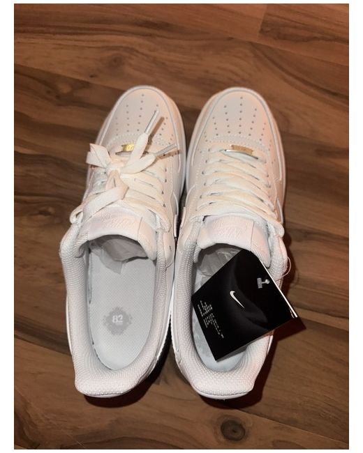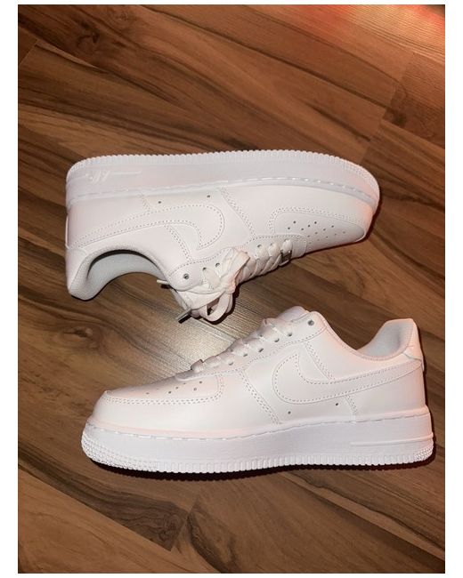 This pair of Nike Air Force 1 trainers in size 7 UK features a classic low top design in a clean white colour. Made with a leather upper and a rubber outsole, these sneakers offer comfort and style. The lace-up closure and standard shoe width make them easy to wear for everyday activities, while the Nike Air cushioning provides added support. Perfect for men looking for a versatile and timeless sneaker option. You know why the price is low