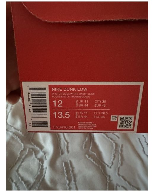 These Nike Dunks in racer blue photon dust are a stylish addition to any sneaker collection. The trainers feature a classic design with a comfortable fit, suitable for men in a UK shoe size 11. The vibrant blue colour adds a pop of colour to any outfit, making them a versatile choice for everyday wear. Perfect for those looking for a trendy and high-quality sneaker option from the Nike Dunk product line. The shoes have been brought from JD