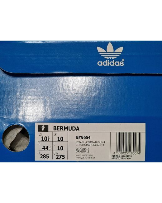 Style Code: BY9654. adidas Bermuda. An archival classic, the adidas Bermuda is revived for a contemporary audience. - Padded Collar. - Serrated Synthetic Leather 3-Stripe Overlays. - Suede Upper.