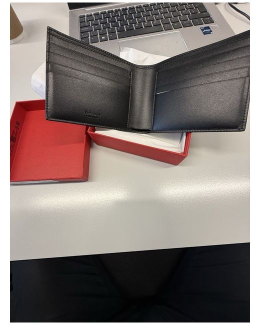 NEW Salvatore Ferragamo Wallet Classic Bi-Fold Wallet - Black Note: Box + Authentication Card included. Details Below: Ferragamo bifold wallet in hammered calf leather features a classic design Front foiled logo lettering One note compartment Six card slots Two slip pockets Approx. 3.3"H x 4.3"W Lining: Fabric/leather Made in Italy