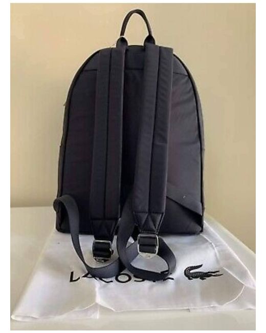 Lacoste Rucksack. RRP £375 Deep Navy colourway. Limited Edition Multi Croc. Embroidered crocodile pocket. Zip frontal fastening. One external pocket. One internal pocket .Adjustable straps. H: 35cm. W: 29cm. D: 13cm Handle height : 5cm Strap length : 80cm Last one available in stock. New with tags.