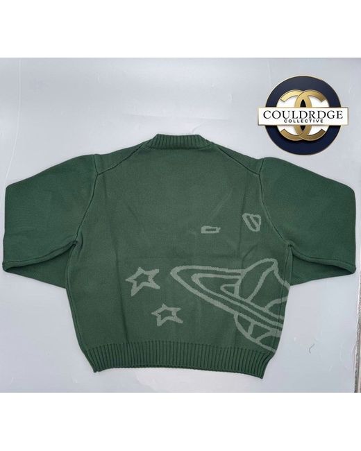 Introducing the Broken Planet Green Knit jumper, a stylish pullover perfect for casual occasions. Made from comfortable cotton knit fabric, this long sleeve jumper in size L is machine washable for easy care. The green colour adds a pop of colour to your outfit, making it a versatile piece for any season. With a regular fit and the Broken Planet brand, this jumper is a great addition to any man's wardrobe.