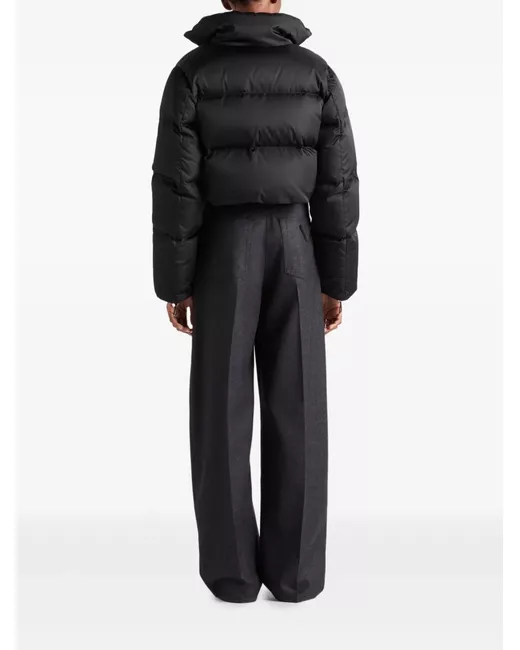 black padding stand-up collar zipper closure welt zipper pockets elasticized drawstring hem enamelled metal triangle logo