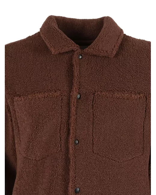 Men's Brown teddy-cloth button-fastening jacket
