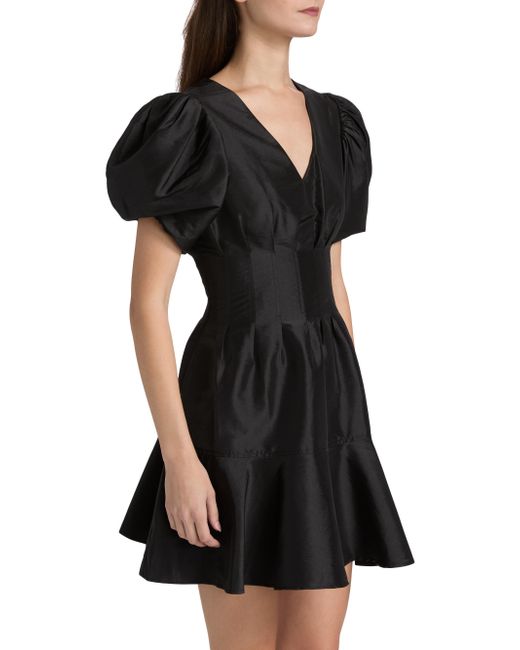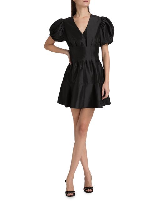 SIMKHAI's Edwina minidress is crafted of taffeta in a fit-and-flare silhouette. Voluminous puff sleeves lend added shape to this silhouette. V-neck Short puff sleeves Back zip closure 60% polyester/40% nylon Lining: 100% polyester Dry clean Imported SIZE & FIT About 33.5" from shoulder to hem Model measurements: 5'10" tall Model is wearing a US size 4. Contemporary Sportswear - Workshop > Simkhai > Saks Fifth Avenue. SIMKHAI. Color: Black. Size: 0.