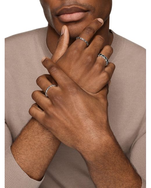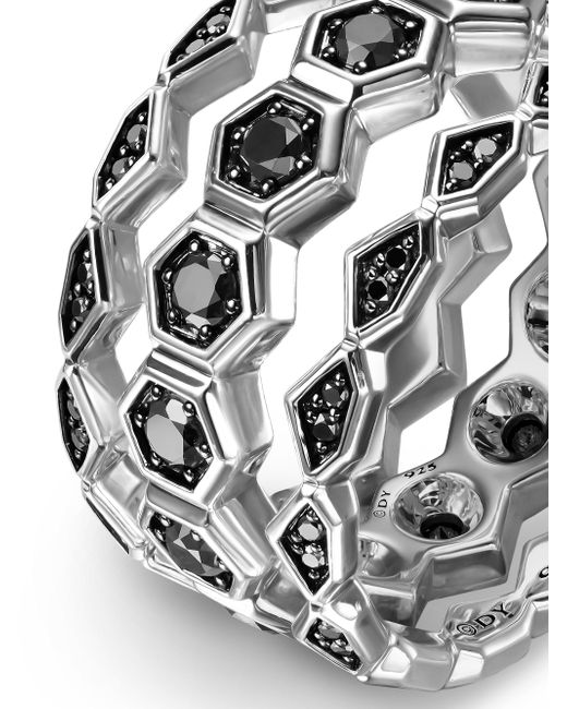This distinctive men's design is inspired by modern architecture. Sterling silver Pavé-set diamonds, total carat weight ranges from 1.31 to 1.51 (dependent on size) Ring, 9.3mm Set of 3 rings can be worn individually or stacked Imported ABOUT THE BRAND David, a sculptor, and his wife, Sybil, a painter, launched their innovative jewelry brand in 1980 in New York City. Since then, the American design house has pioneered cutting-edge collections-from its iconic combination of sterling silver and diamonds to signature pinky rings. Today, with their son Evan, the Yurmans continue to deliver timeless pieces inspired by nature, art, ancient symbols and Manhattan's stunning architecture. Lsd Jewelry - David Yurman > David Yurman > Saks Fifth Avenue. David Yurman. Color: Black Diamond. Size: 7.