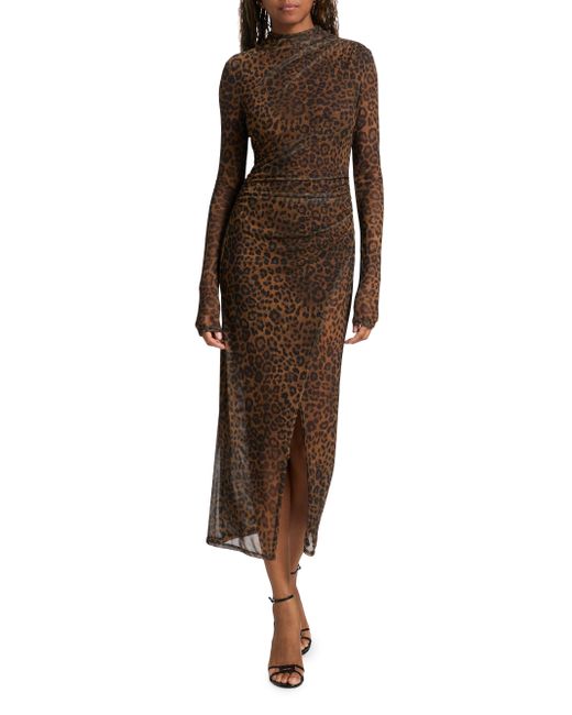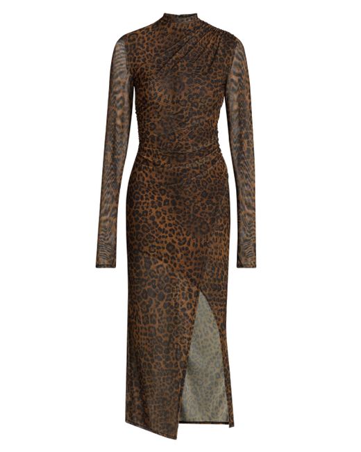 Crafted from stretch semi-sheer mesh, LaPointe's sleek midi-dress showcases a fitted body-con silhouette adorned with an exotic leopard print. This piece features a mock turtleneck, long sleeves, and ruching throughout. Mock turtleneck Long sleeves Surplice hem Concealed back zip closure 95% polyester/5% elastane Machine wash Made in Portugal SIZE & FIT Model measurements: 5'10" tall Model is wearing a US size Small. Designer Lifestyle - Designer Lifestyle Sport > Lapointe > Saks Fifth Avenue. LaPointe. Color: Leopard. Size: XS.