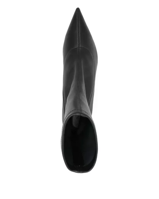 black pointed toe kitten heel sock-like fit leather upper stretchy fabric top
