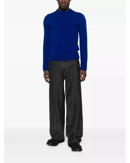 royal blue crew neck long sleeves ribbed cuffs and hem plain knit