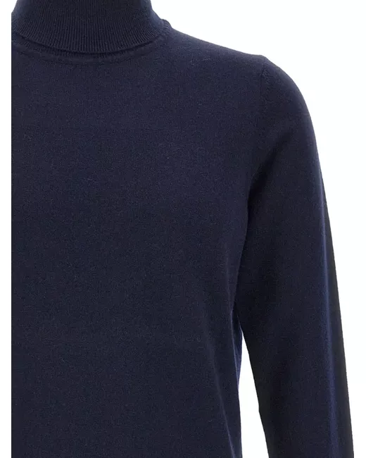 midnight blue roll-neck long sleeves ribbed cuffs and hem plain knit