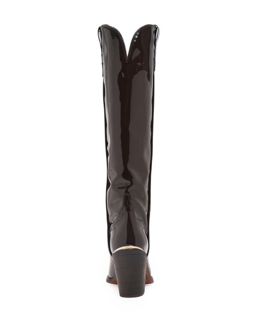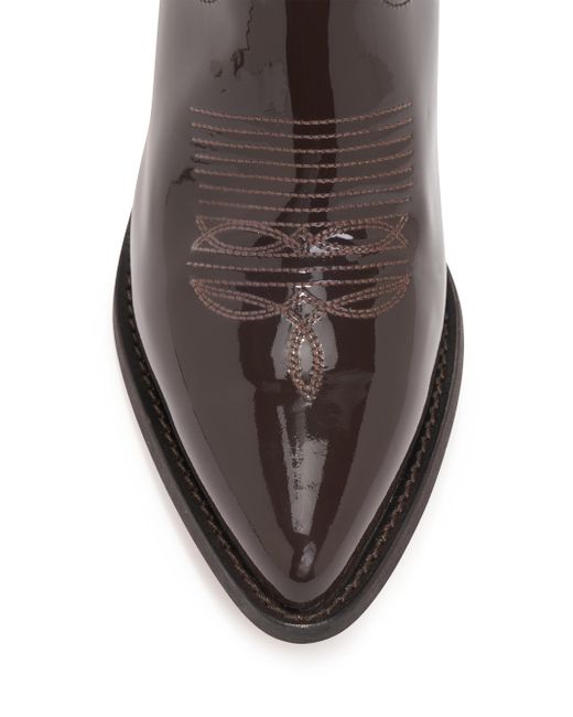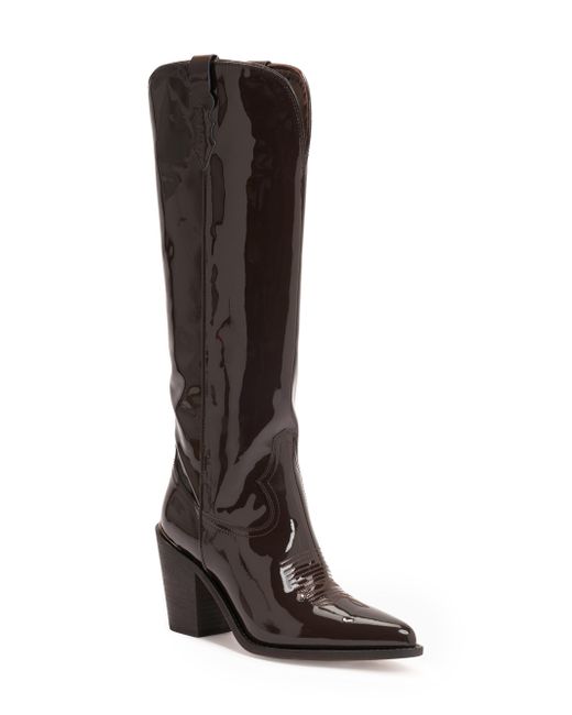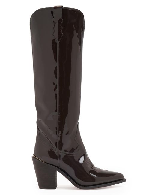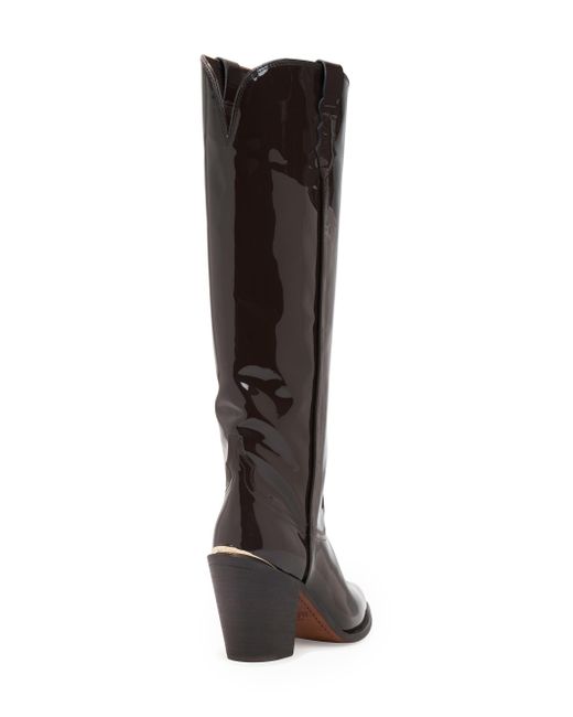 Partlow's Coco Western-style knee-high boots are crafted of glossy patent leather and designed with a block heel. Point toe Pulls on Leather upper Leather lining Leather sole Made in Italy SIZE Heel: about 3.54" (90mm) Shaft height: 15.35". Women's Shoes - Designer Womens Shoes > Partlow > Saks Fifth Avenue. Partlow. Color: Marrone. Size: 6.5.
