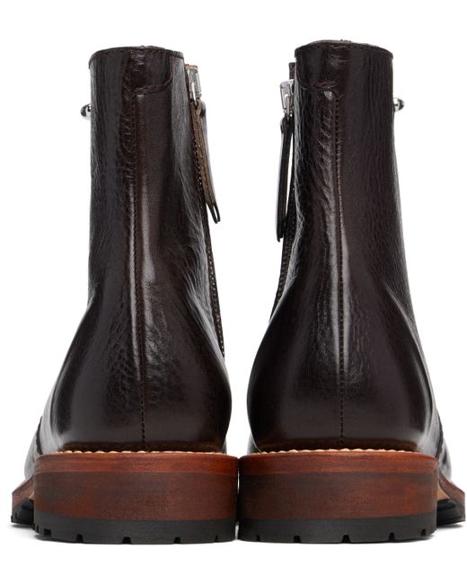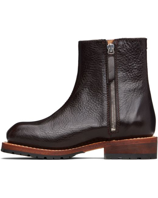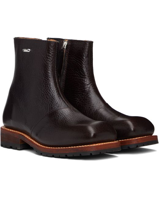 Ankle-high grained leather boots. · Square toe · Logo hardware at outer side · Zip closure at inner side · Topstitching at welt · Treaded Vibram® rubber sole Supplier color: Deep americano leather