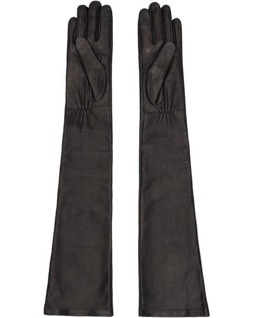 Grained nappa leather opera gloves. · Elbow-length · Partially elasticized wrist · Logo hardware at cuffs · Full silk jersey lining Supplier color: Black